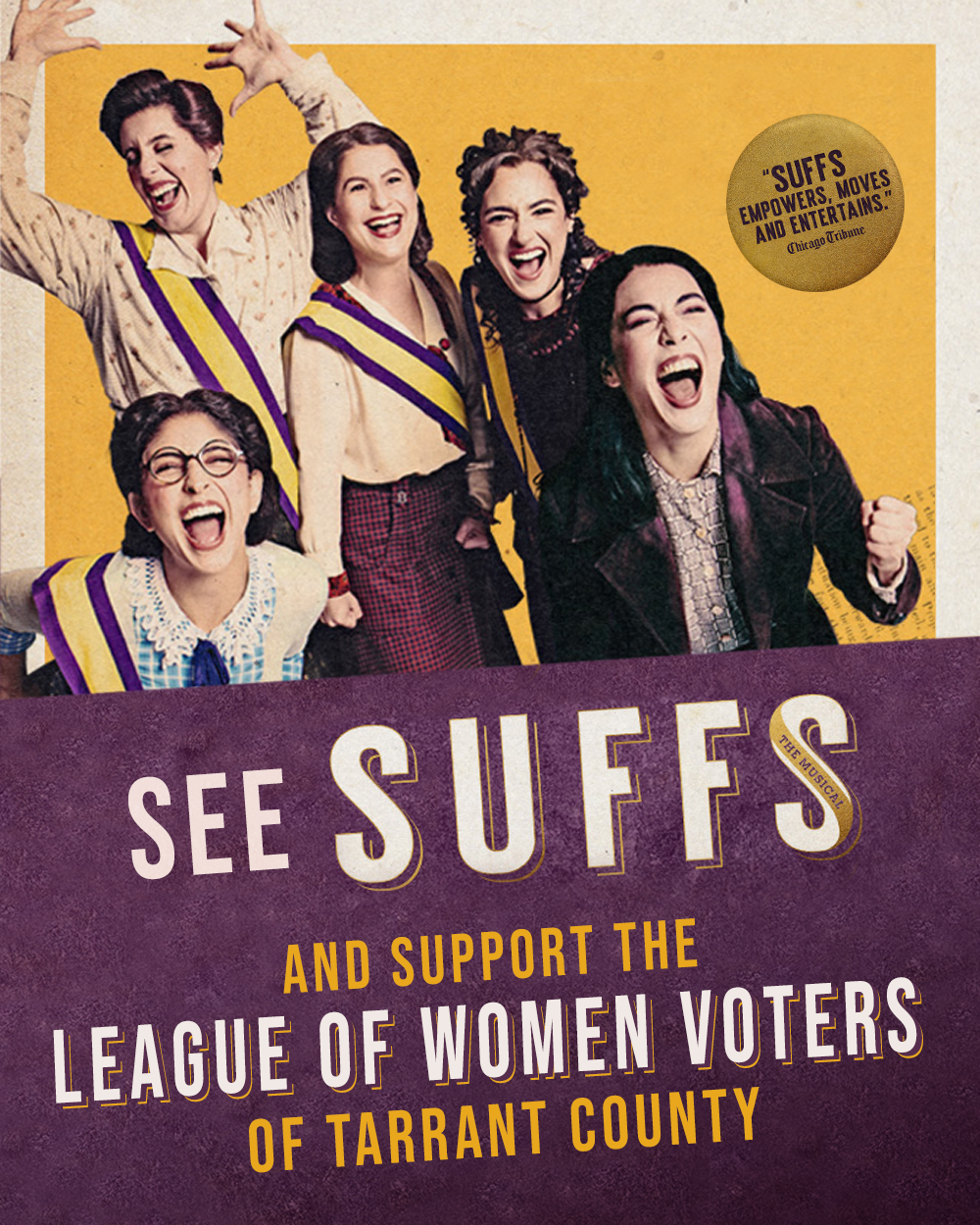 We've reserved a special block of seats for League members and supporters during two performances of SUFFS at Bass Hall. SUFFS is the Tony Award-winning Broadway Musical about the brilliant, passionate, and funny American women who fought tirelessly for the right to vote.